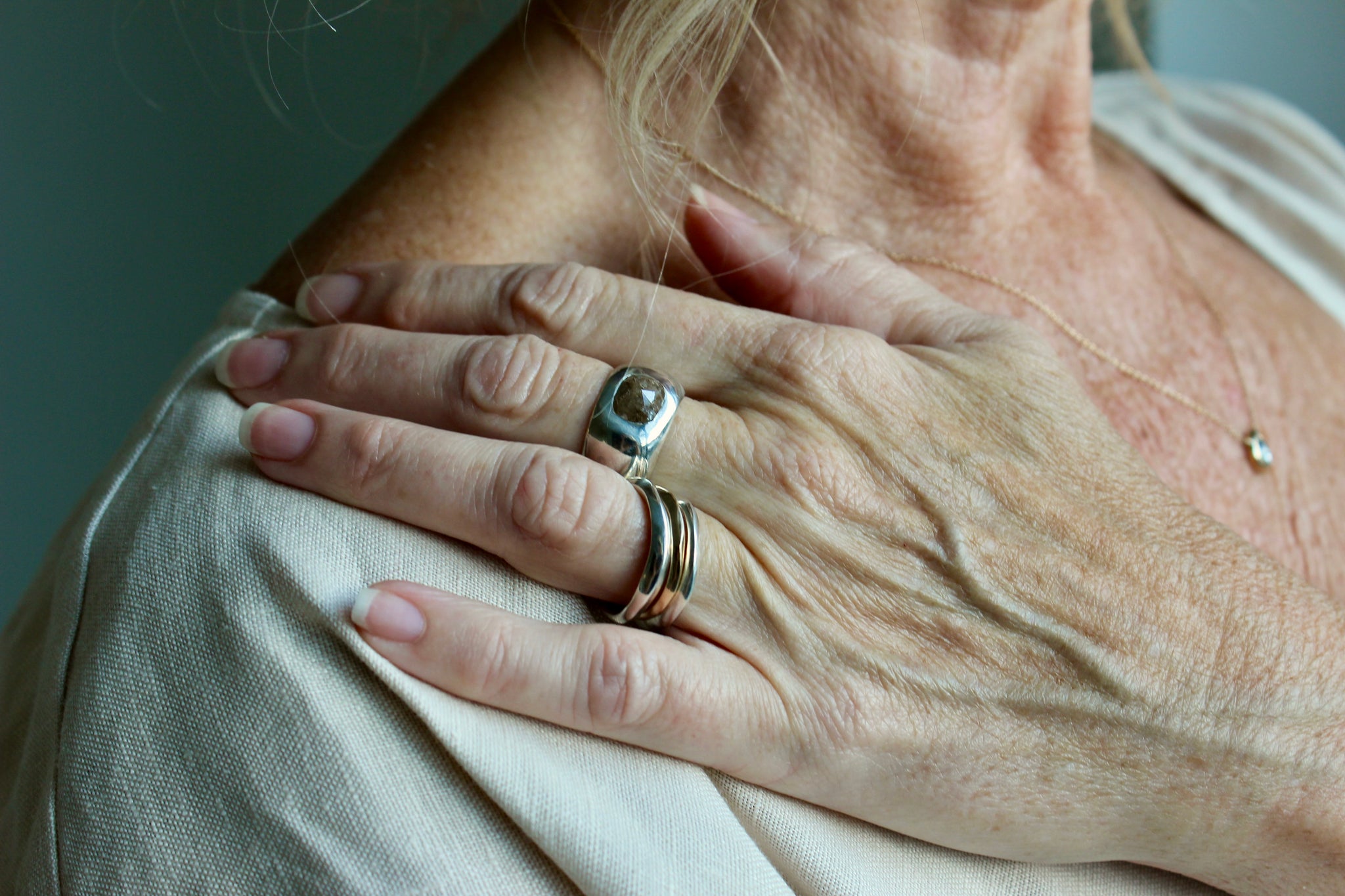 A thin fluid and organic ring, like a steam of water flowing over your finger. The thinnest of 3 rings in the Ebb collection, these guys just want to be stacked!